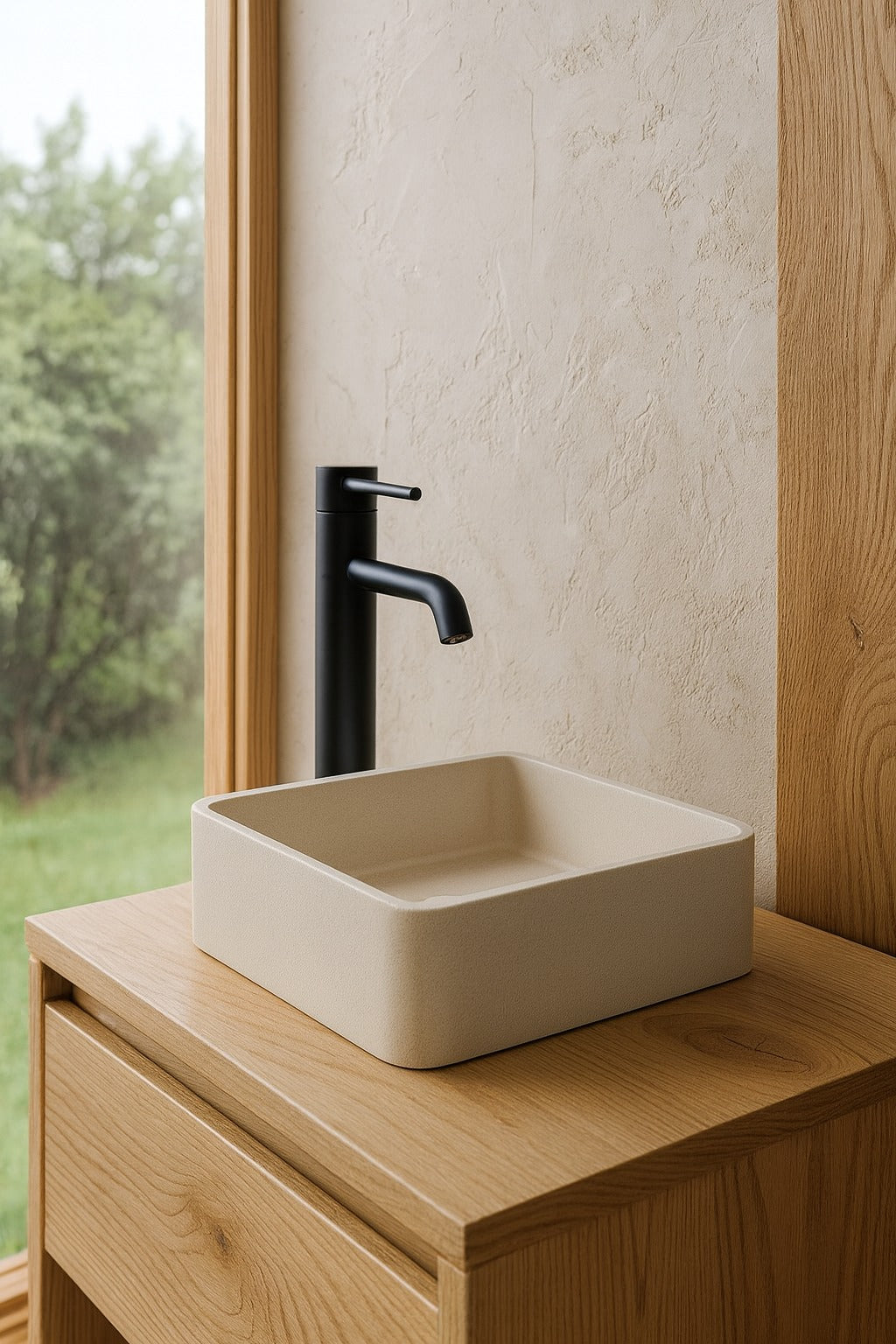 Modern and minimalist, this square above-counter basin offers a sleek, contemporary look for any bathroom. Crafted from durable, high-quality materials, it features smooth edges and a refined matte finish. Available in multiple colors, it provides both style and functionality—perfect for creating a clean, designer-inspired space.