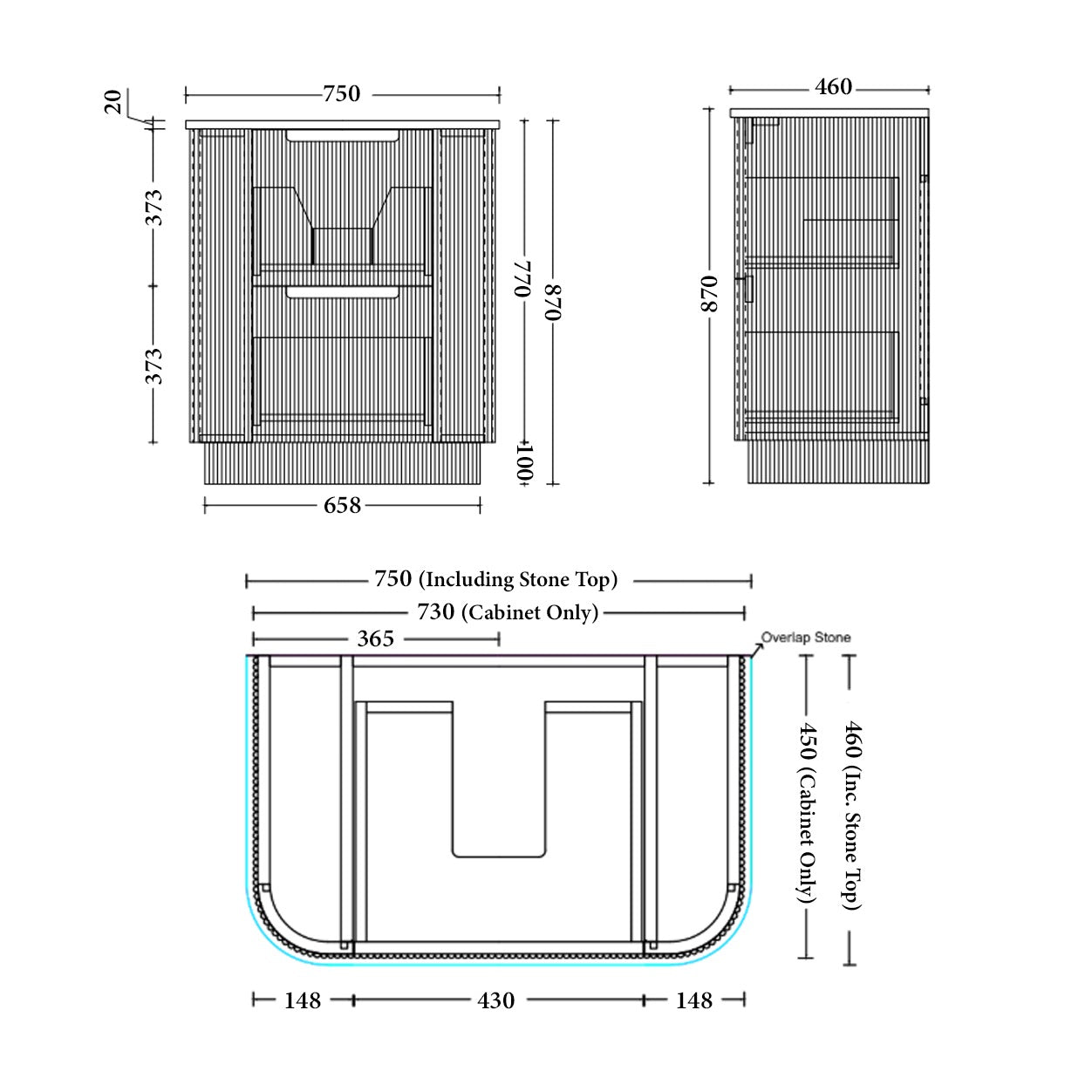 OAKMERE Freestanding Vanity - 4 Sizes Available